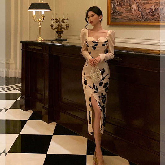 Printed strapless black dress new sexy mermaid long party dress S5682