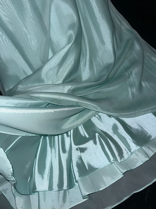 Lake blue satin strapless fitted long ball gown R6918
