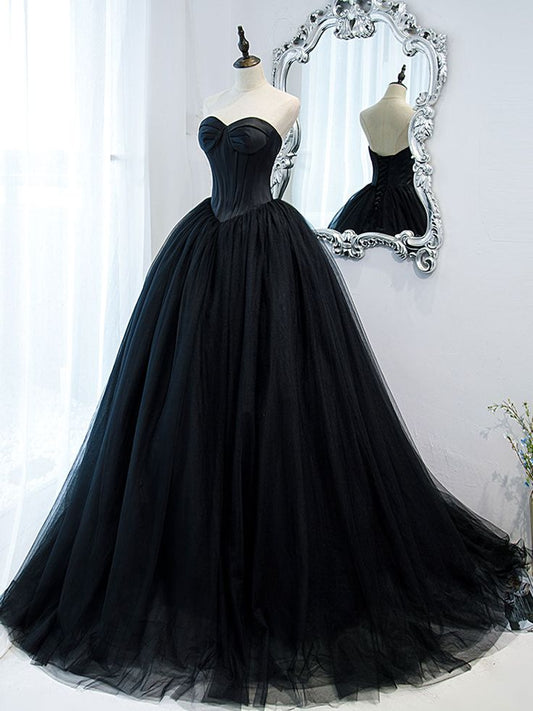 Black Sweetheart Neck Tulle Long Prom Dress, Black Formal Evening Dress S5193