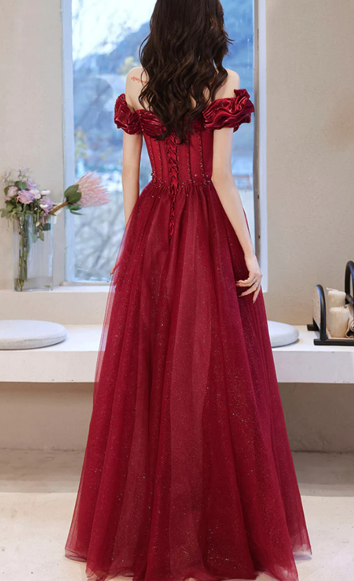 Tulle Prom Gown Evening Wedding Dress Cocktail Sweetheart Neckline Beaded Prom Dress S872