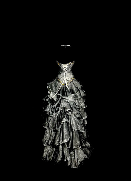 Gray strapless rhinestone-embellished, fitted waist, pleated, tiered skirt, long ball gown R6661