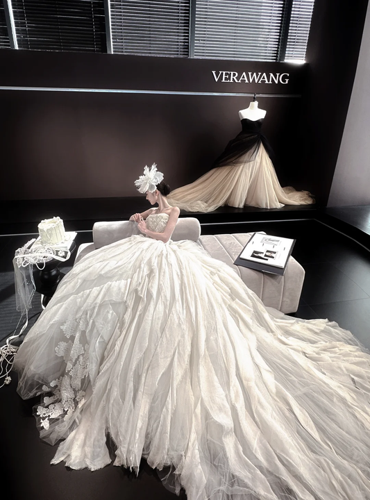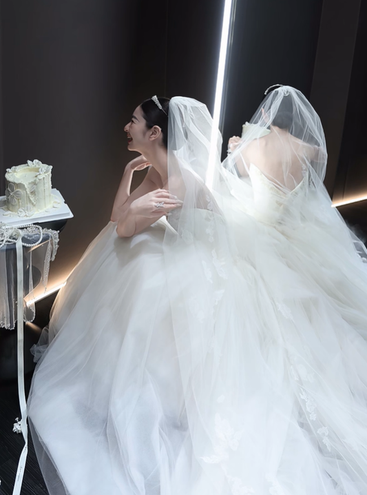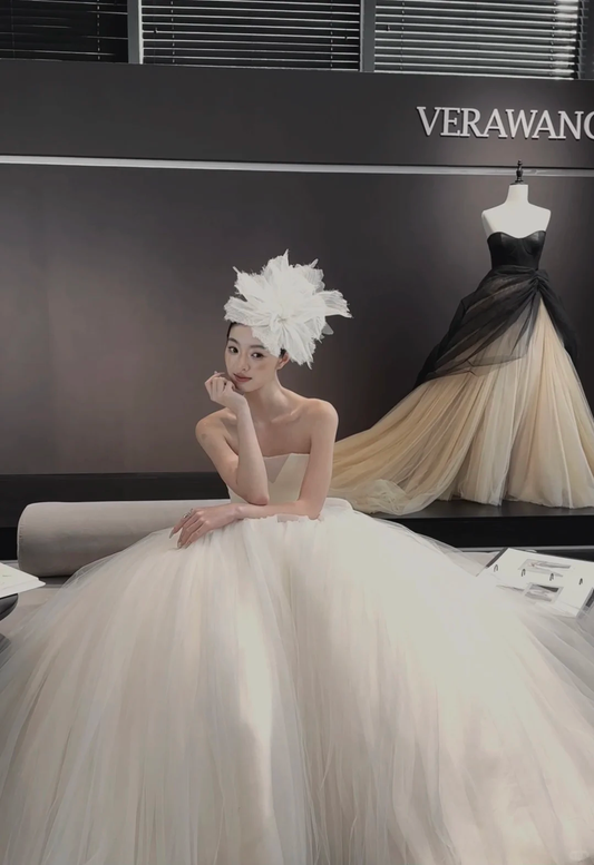 White tube top waist fluffy skirt tulle bridal dress R6047