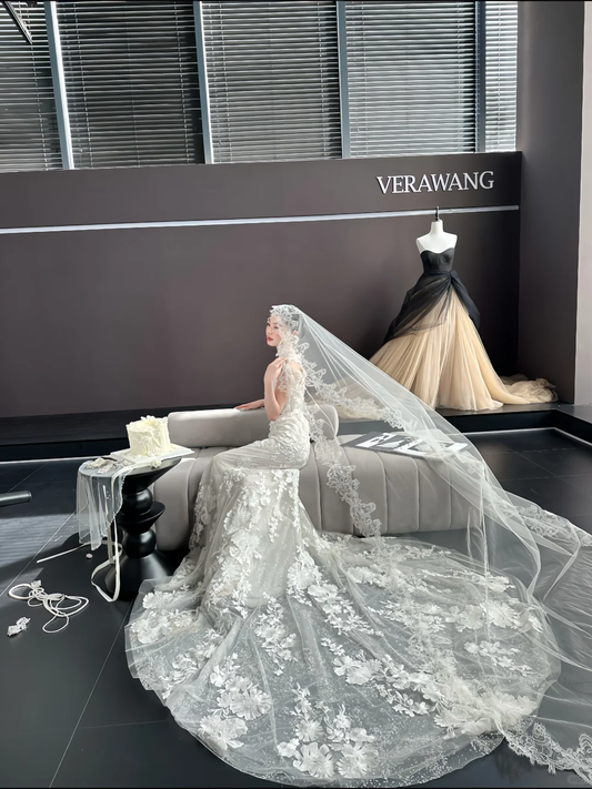 White strapless lace waist slim fishtail skirt floor-length wedding dress R6042