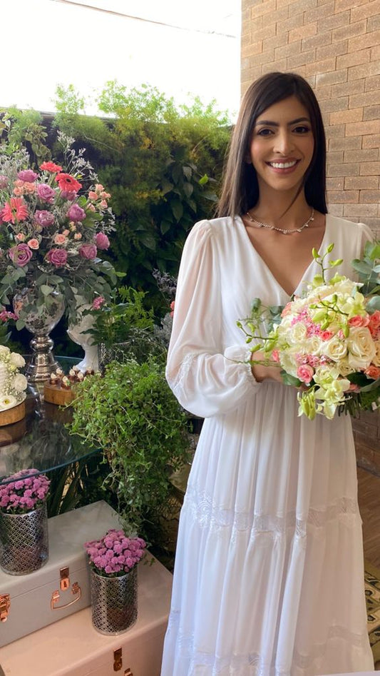 White Evening Dress Chiffon Long Prom Dress With Slit S3174