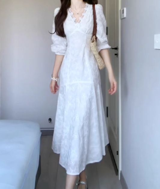 Large size French temperament embroidery design dress gentle slim fishtail long skirt R1828