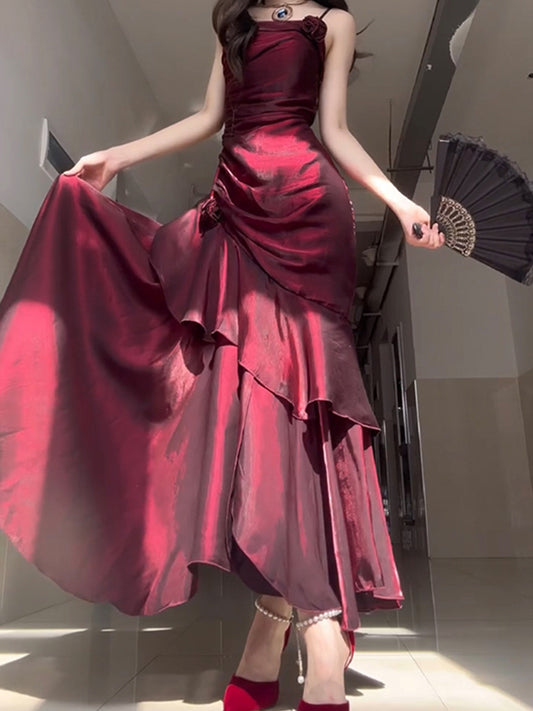 French fishtail evening dress lolita adult ceremony high-end dinner suspender skirt R1671