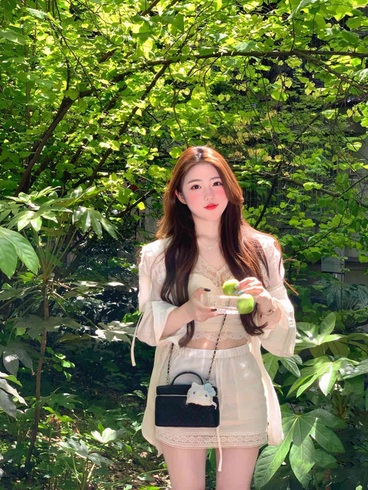Beautiful and gentle temperament white shirt lace inner a-line skirt three-piece suit R0889