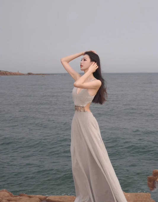 Sexy backless sleeveless dress hollow cold temperament long dress R0486