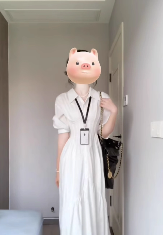 Atmosphere wear white polo long-sleeved dress waist temperament fishbone French long skirt R0484