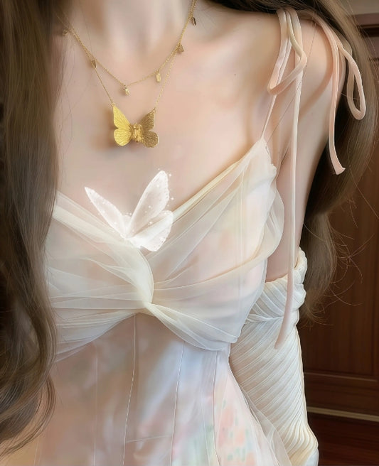 Gentle and elegant mesh suspender dress, beautiful waist and elegant long skirt R0490
