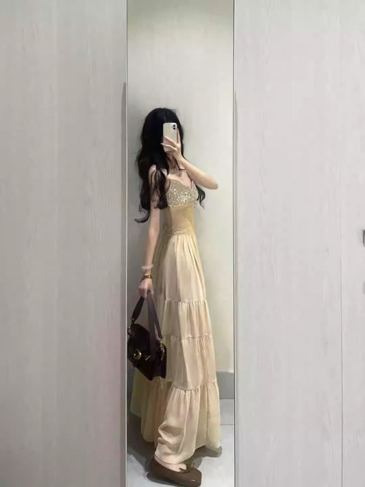 Exquisite suspender dress small dress celebrity waist temperament long skirt R0495