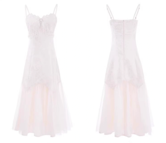 French lady high-end sling dress rich daughter jacquard mesh splicing temperament dress R0416