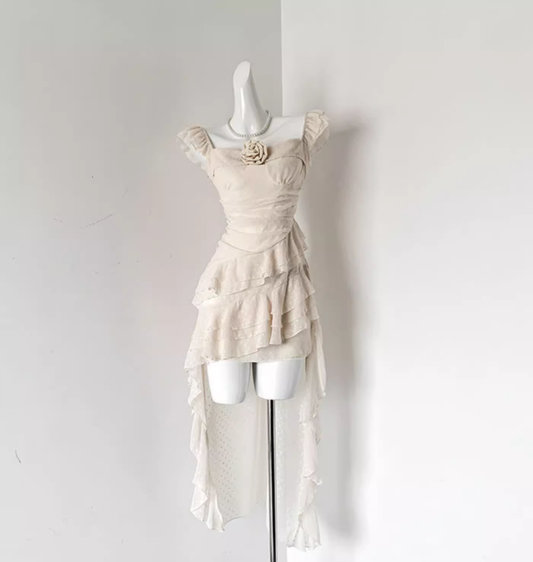 2025 Spring new shoulder pure flower bud skirt high-quality texture cover meat slimming dress R0292