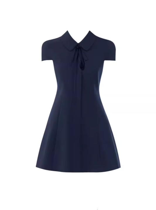 Lapel Raglan Short Sleeve Dress 2025 Thousand Gold Sense Waist A-line Short Skirt R1347
