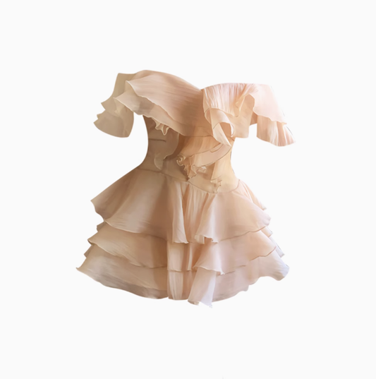 French gentle style one-line ruffle dress 2025 pure desire style seaside holiday dress R1346