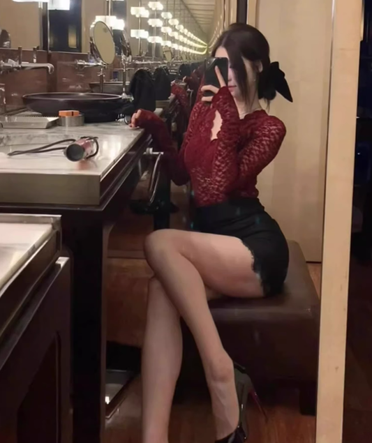 Sexy Royal Sister Style V-neck Lace Top 2025 Large Size Pure Desire Hip Skirt Suit R1240