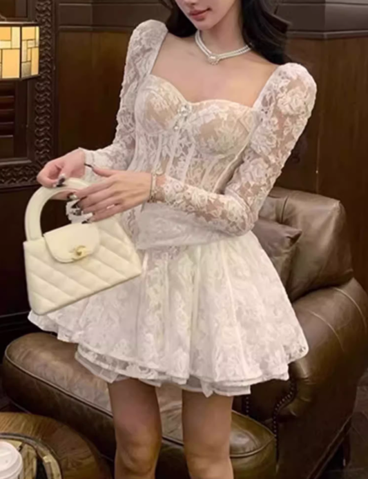 French heavy lace dress 2025 pure desire waist a-line puffy birthday dress R1246