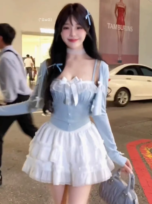 Pure desire style sling long-sleeved cardigan 2025 sweet and spicy A-line skirt suit R1145