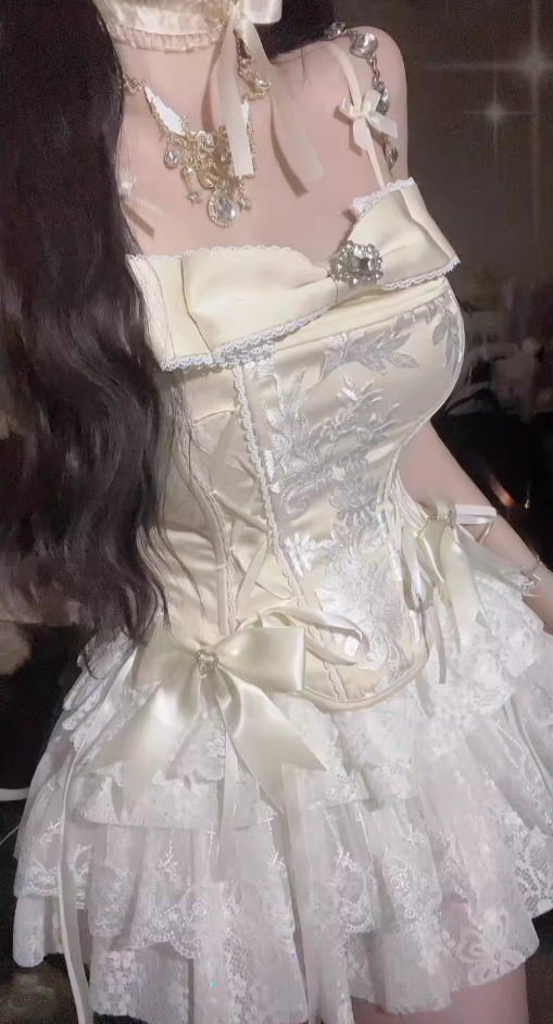 Gentle temperament white suspender dress 2025 new beautiful loose bud short skirt R0777