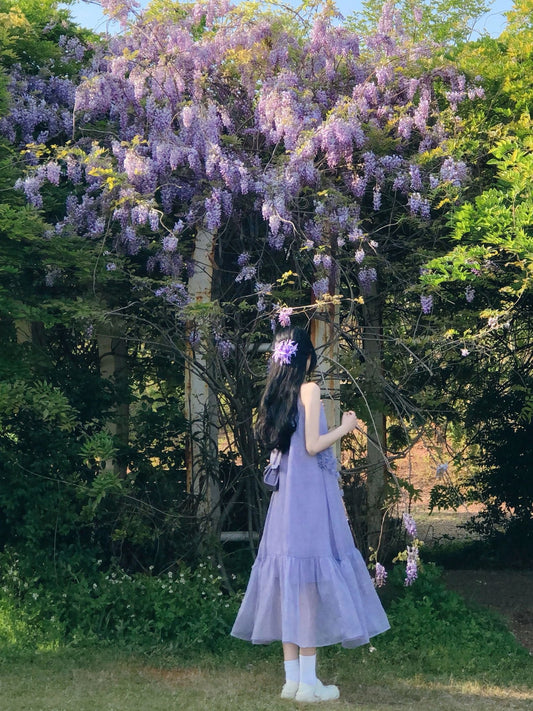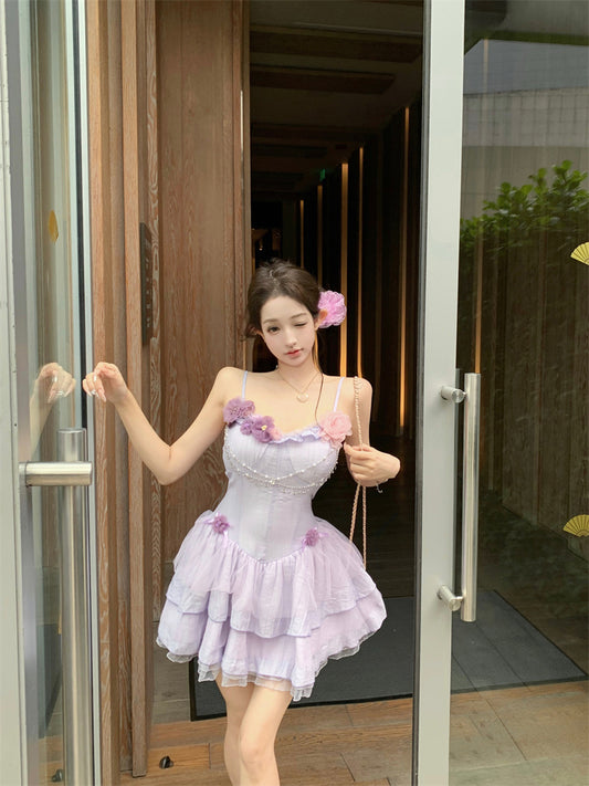 Purple suspender dress 2025 new style waist slim cake short skirt R0667