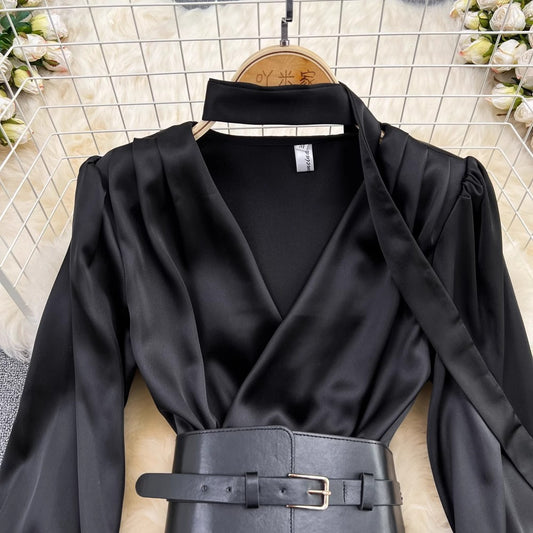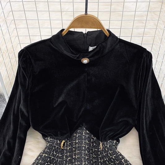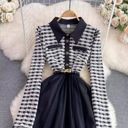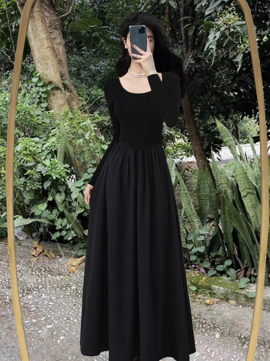 black dress for women 2023 autumn long-sleeved Dress S3884