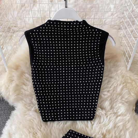Glitter skirt,mid-length skirt, two-piece T-shirt S3894