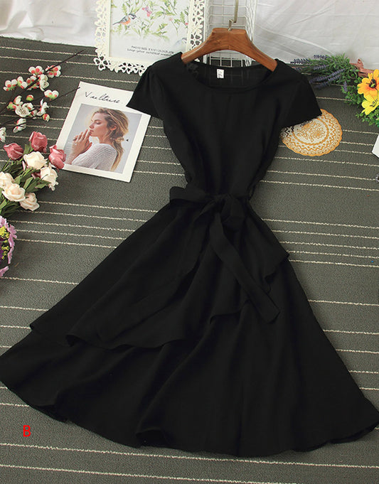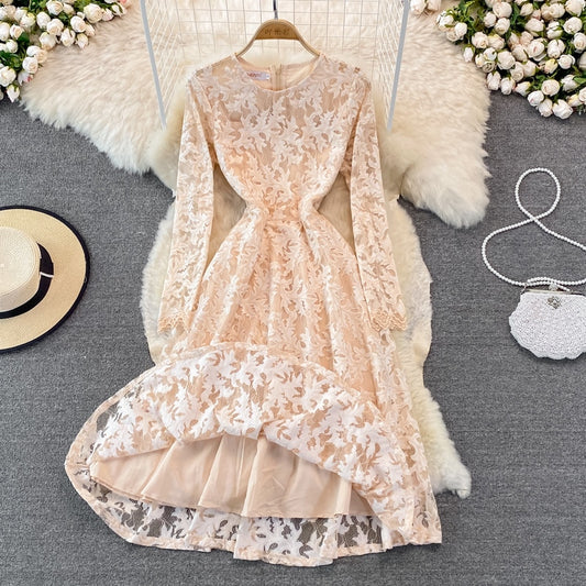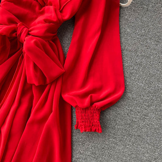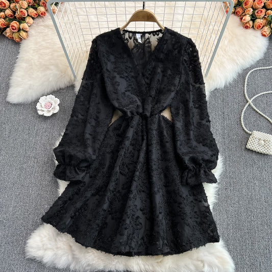 rose floral ribbon irregular hem long-sleeved dress S3430