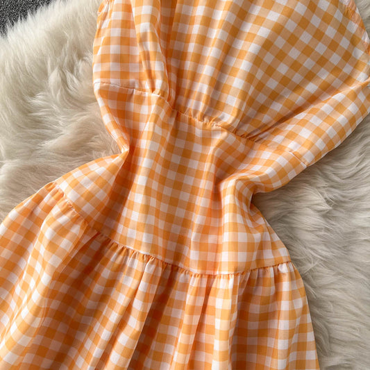 Sweet Plaid Short Sleeve Dress A line Fahion Dress S460