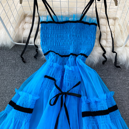 Blue tulle short A line dress party dress S454