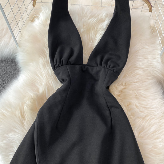 Black A line short dress backless party dress S453