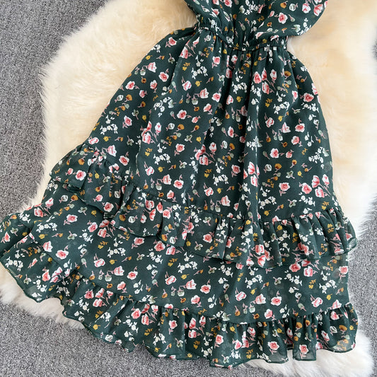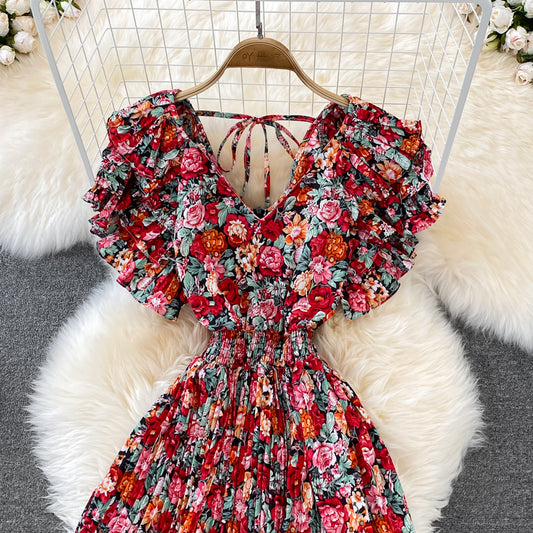 Cute v neck floral dress A line short dress S445