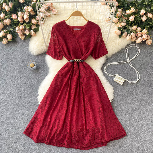 Cute v neck lace short dress A line fashion dress S439