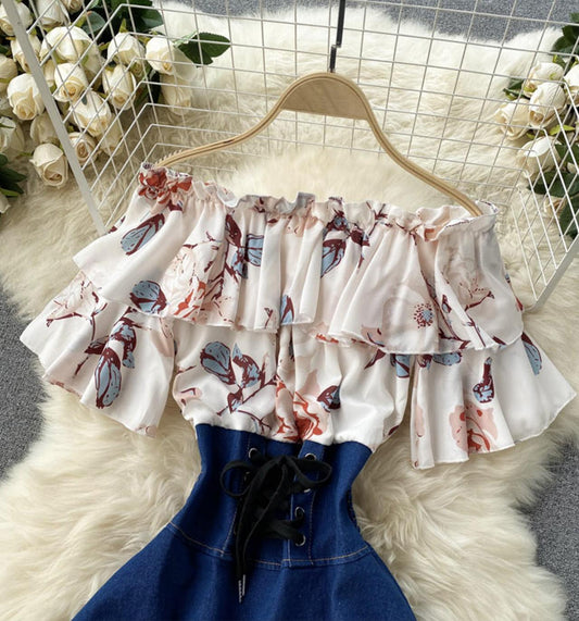 Cute two-piece denim dress fashion girl dress S33