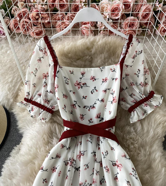 Cute A line floral dress short dress S22