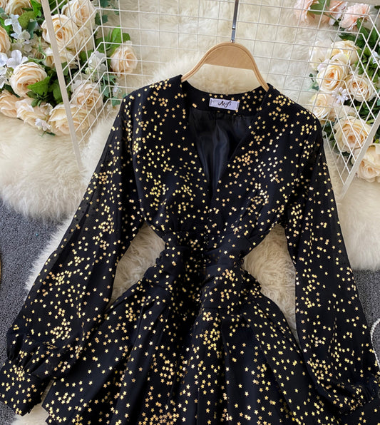Stylish v neck short dress with stars S26