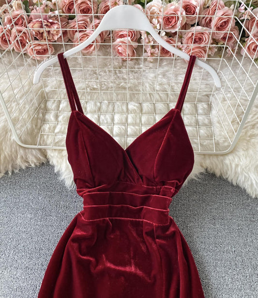 Burgundy velvet long dress S27