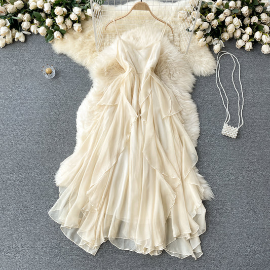 Charming sexy high waist irregular halter dress S24