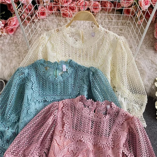 Lace Shirt Bell Sleeve Long Sleeve Top for Women S3915