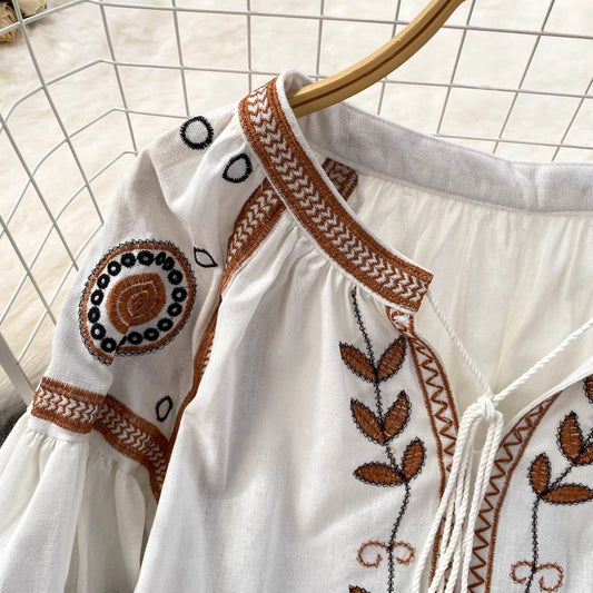 long-sleeved round neck embroidered shirt for women casual tops S3952