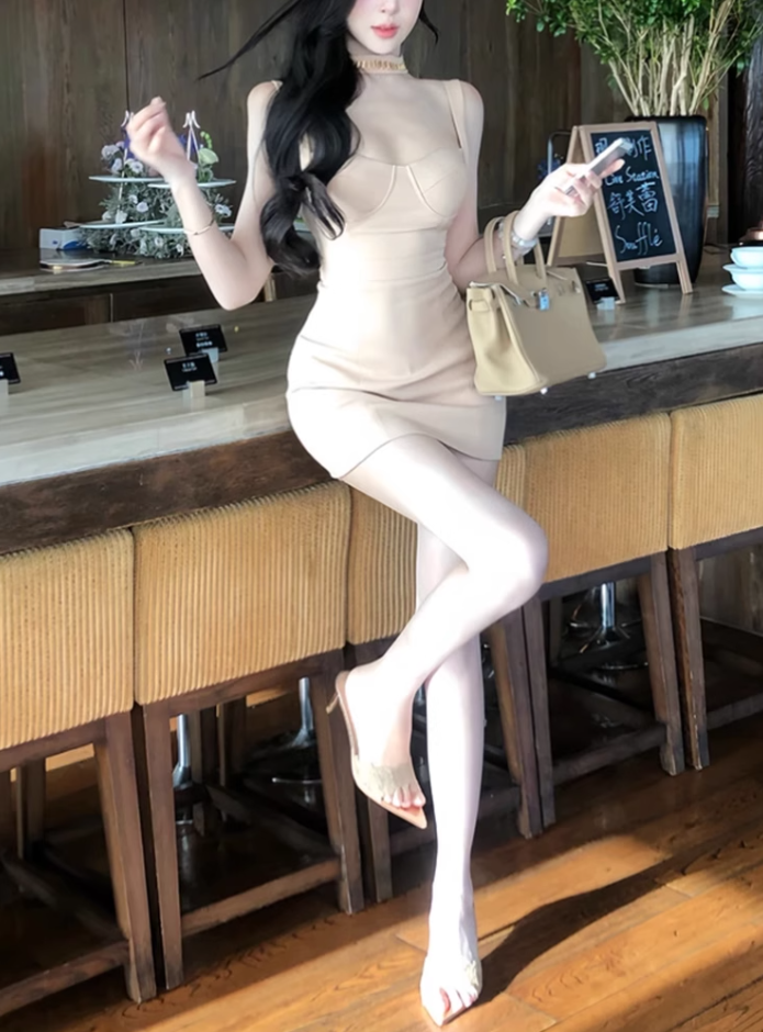 2025 Pure Color Sling Dress with a Sense of Gold, Slimming Waist and Hip Short Skirt R1249