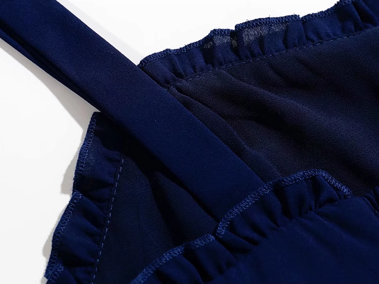 2025 Summer New Blue Beach Temperament Seaside Vacation Long Suspender Dress R0960