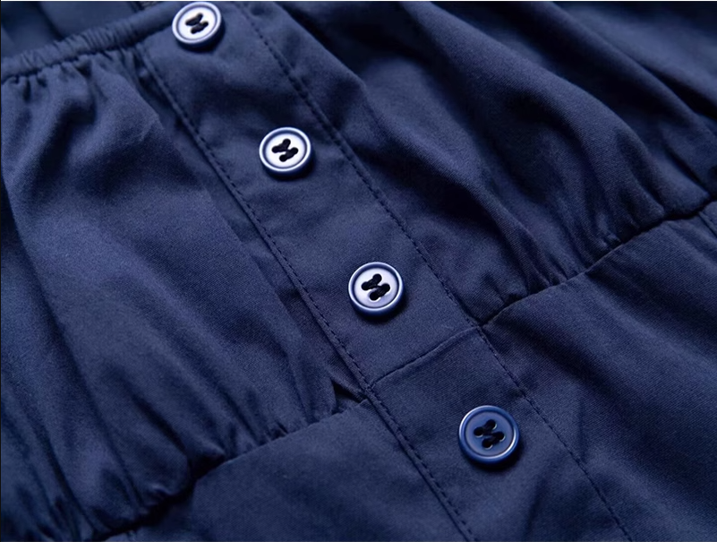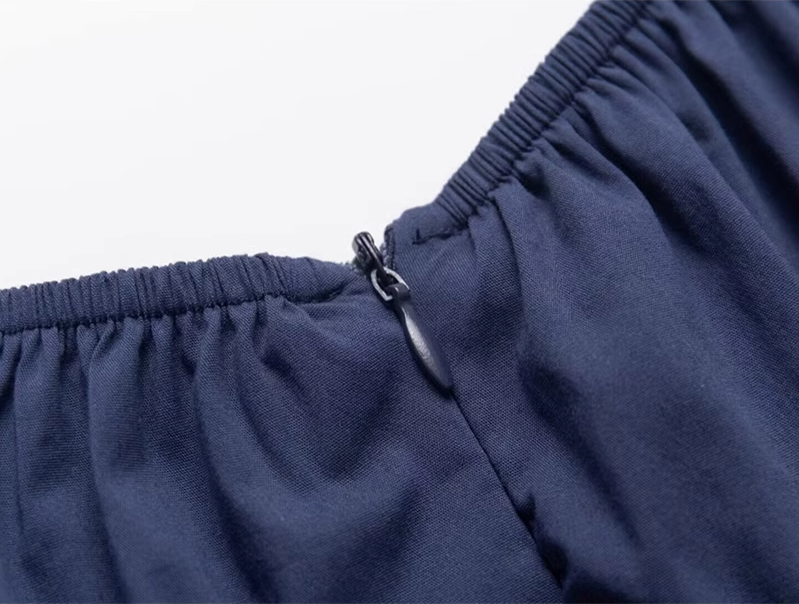 2025 Summer New Blue Square Neck Puff Sleeve Waist Slimming Short A-Line Dress R0944