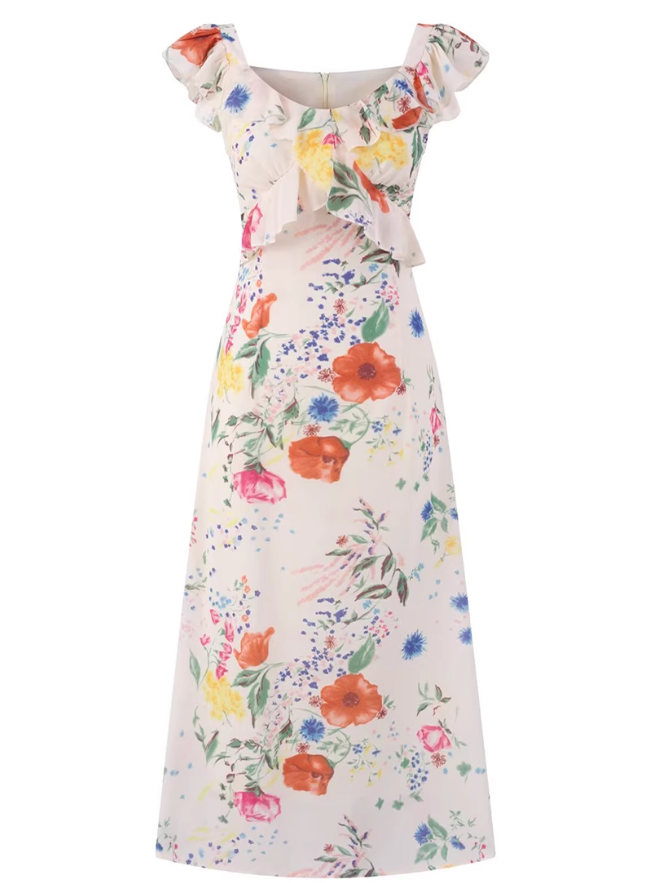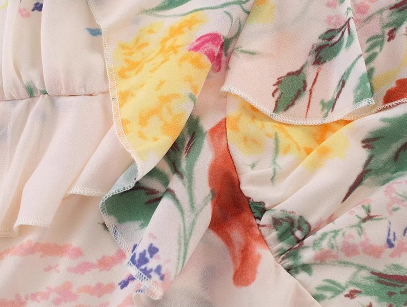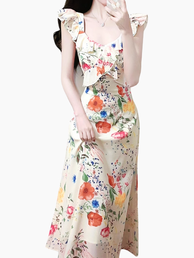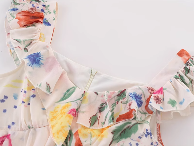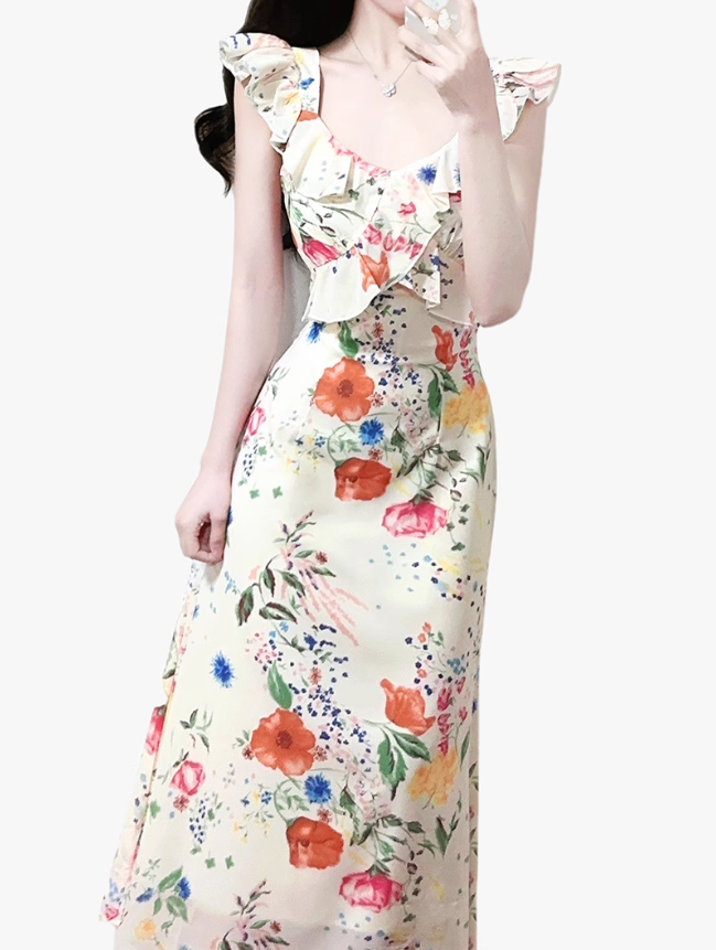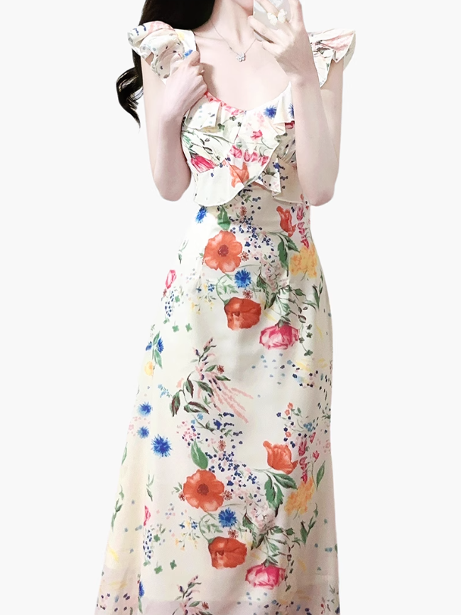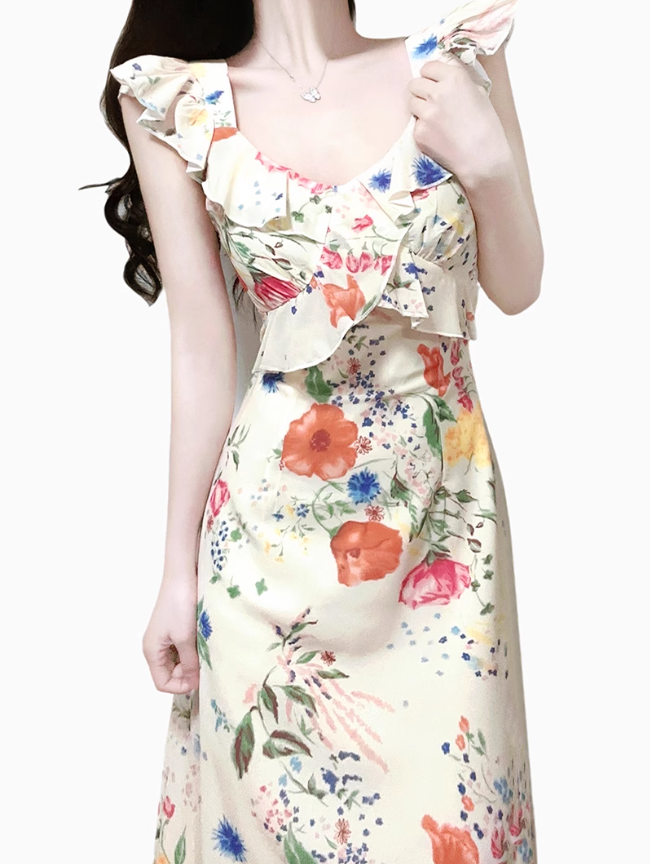2025 Summer New Floral Ruffle French Temperament Sleeveless Dress R0903