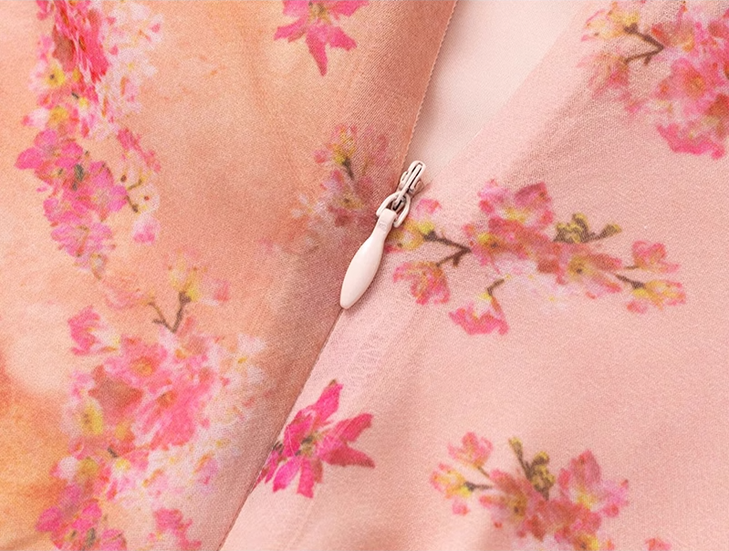 2025 summer new pink floral gentle style small flying sleeve waist lace dress R0954