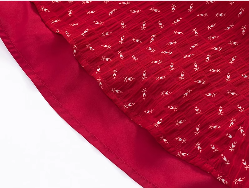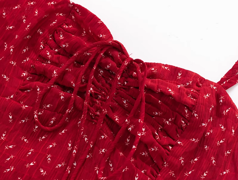 2025 Summer New Red Floral A-line Small Waist Suspender Dress R0911