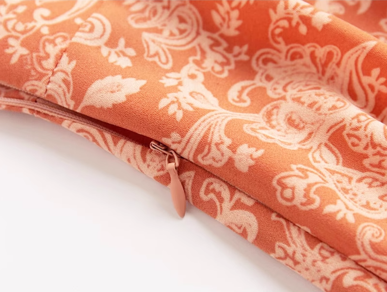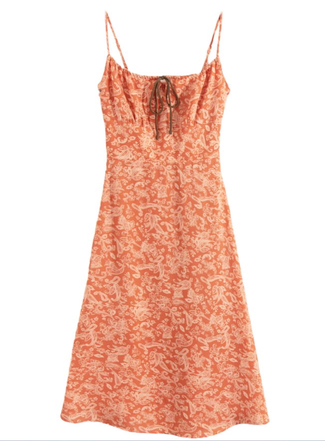 2025 Summer New Retro Cashew Printed Backless French Long Suspender Dress R0967