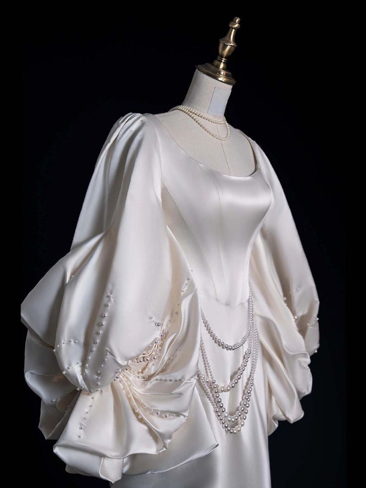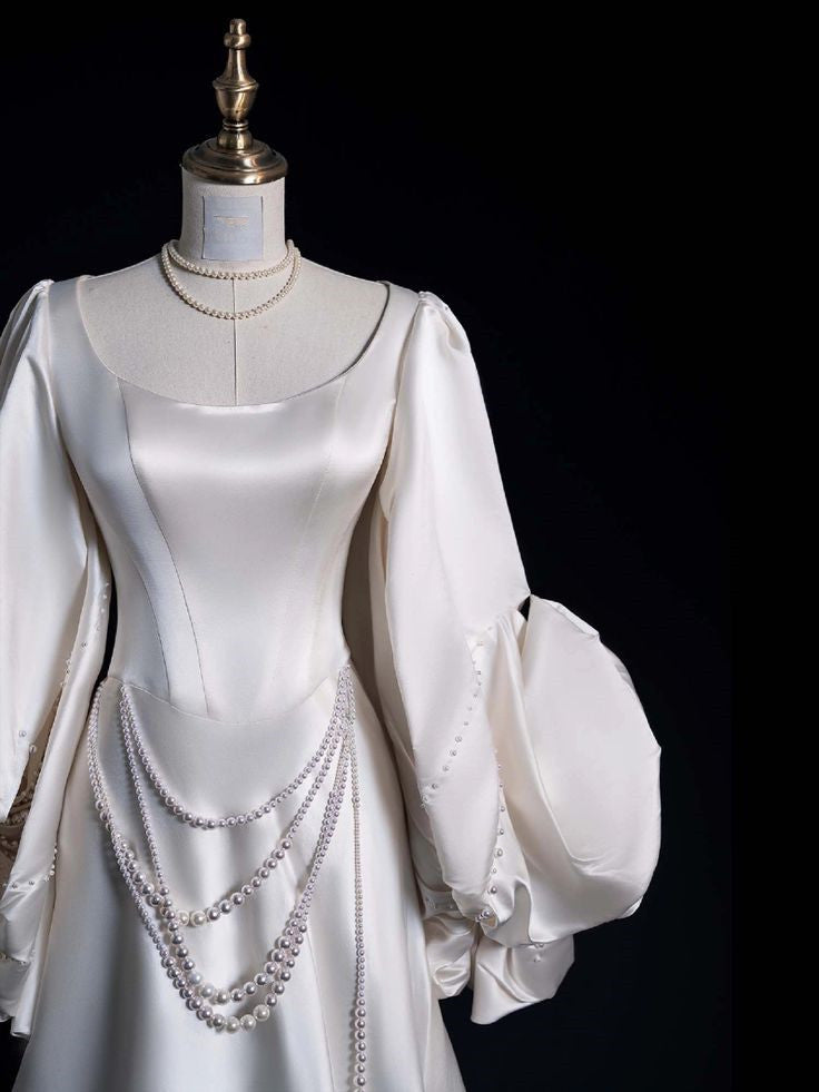 A Line Round Neck Satin Wedding Dresses Long Bridal Gowns S6561