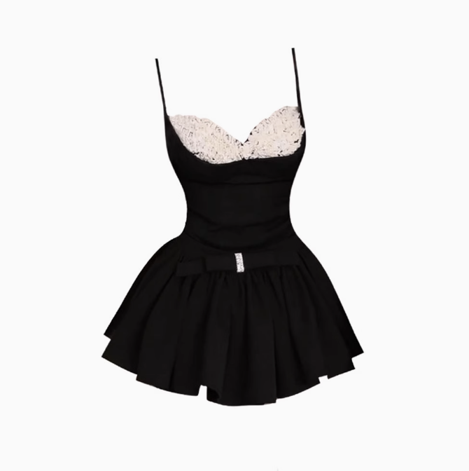 Ballet style contrast color suspender top 2025 sweet hot girl bow a-line skirt suit R1291