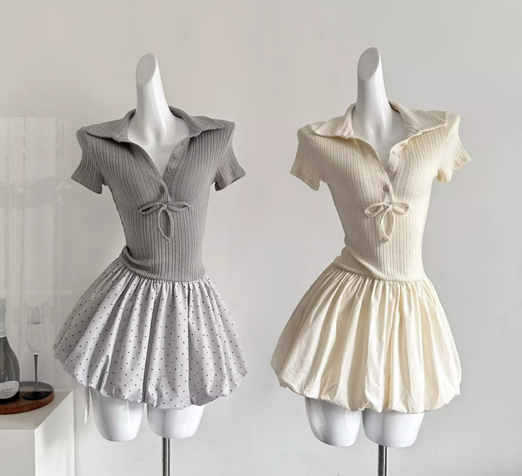 Ballet style French dress 2025 new knitted patchwork short skirt puffy skirt R2050