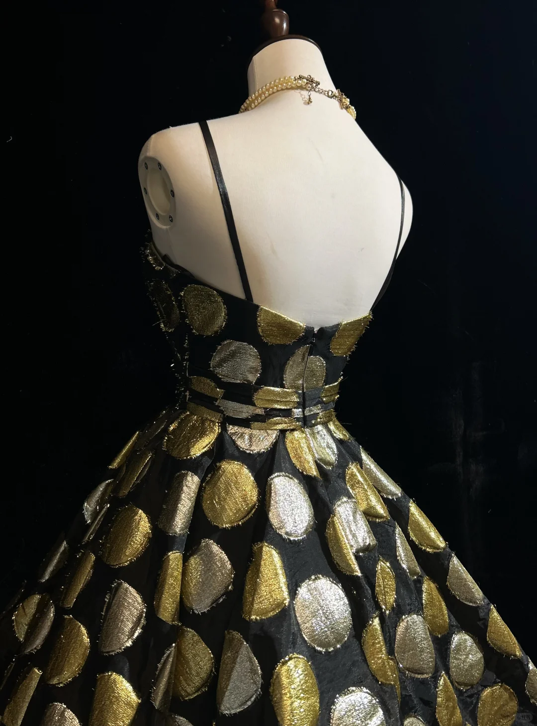 Black background circular pattern suspender waist puffy A-line skirt short skirt homecoming dress R4938
